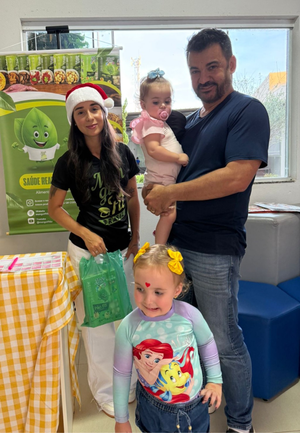 Durante a ação, apresentamos nossos produtos Mangut Fit e também a nossa linha infantil Mangutzinho, desenvolvida com carinho para oferecer alternativas mais saudáveis para o lanche das crianças.